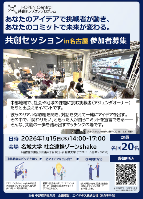 I-OPEN CENTRAL に運営として参画しております。次回は名古屋共創セッションです。